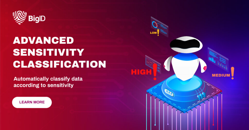BigID leverages Machine Learning (ML) and Named Entity Recognition (NER) to automatically identify sensitive information and link that specific instance of sensitive information into an individual identity or profile.
