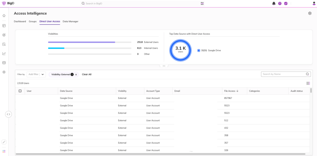 Majority of organizations today really do not have a clear way of representing who has access to certain files or cloud storage solutions. This is paramount to understand what risks are already active in their environments today in order to effectively mitigate unwanted exposure. Luckily, BigID has this ability through our Access Intelligence App.