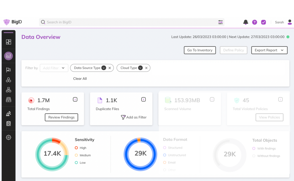 Accurately inventory all your data, everywhere – by sensitivity, type, policy, risk, and more.