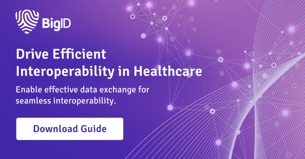 Schedule a demo to learn all the ways BigID’s data intelligence platform — complete with our core discovery foundation and extensible app framework — can enable any health organization to achieve all levels of healthcare data interoperability, boost efficiency, reduce risk due to errors, meet compliance regulations, and ultimately increase patient confidence in provider care.