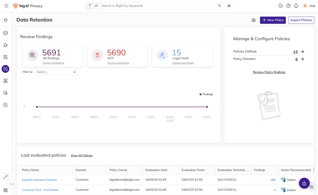 Legacy approaches to data cleanup won’t cut it in an AI-first world. With BigID, organizations can take action, not just observe, and finally bring retention and deletion under one intelligent, unified roof.