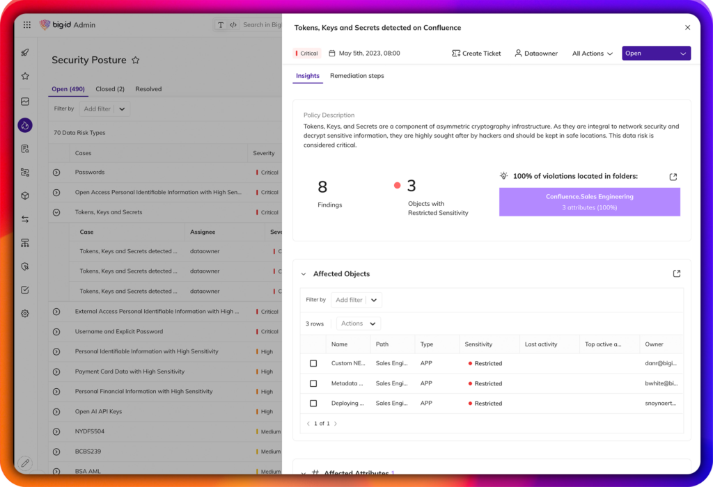 Redact exposed secrets, revoke permissions, quarantine high-risk files, and automate remediation based on customizable policies.