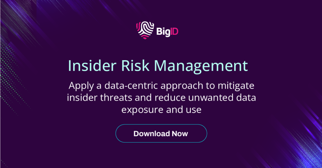 Insider risks are becoming one of the prevalent concerns for organizations’ data security teams. These risks, whether they stem from malicious intent orâmore often from inadvertent actionsâ can seriously compromise sensitive data and damage a businessâs reputation. At inception, BigIDâs core tenet has been to provide solutions that empower organizations to effectively manage security associated with key data assets, including managing insider risk.