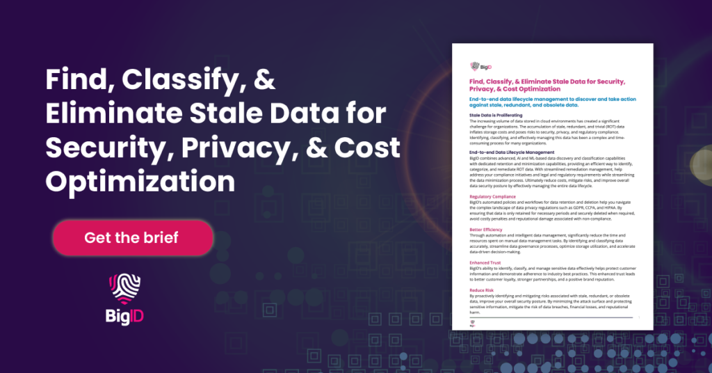 To eliminate stale and obsolete data from your organization’s data landscape— book a 1:1 demo with BigID today.