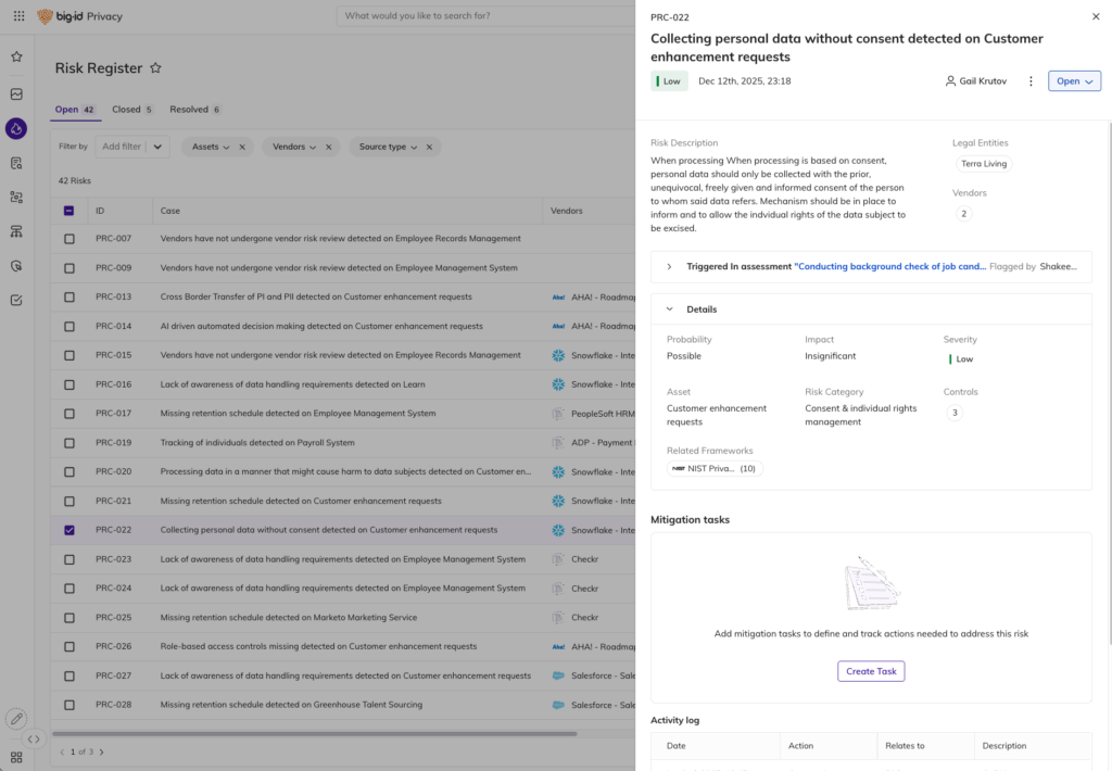 BigID empowers privacy, compliance, and AI governance teams to move beyond static consent records and ensure consent choices hold up across real AI data use.