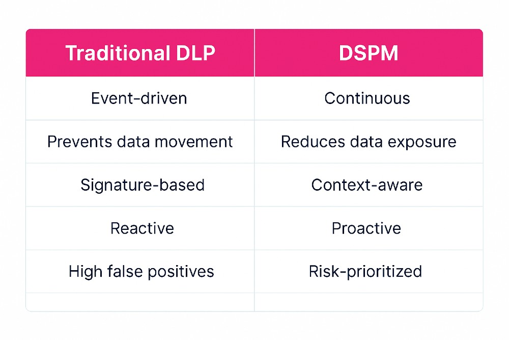DSPM fills the critical gaps traditional DLP missesâdelivering real-time visibility, risk prioritization, and automated action.