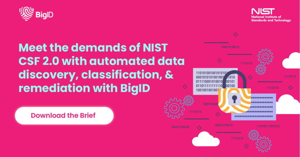 The NIST CSF framework’s core is focused on six essential functions: Govern, Identify, Protect, Detect, Respond, and Recover. These functions provide a streamlined approach to the cybersecurity risk management lifecycle. BigID can help organizations align with the core functions and comply with the requirements of NIST CSF 2.0.
