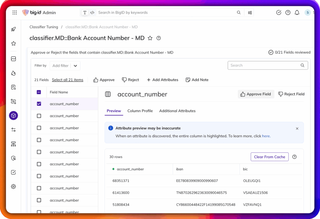 BigID combine le réglage des classificateurs, l'exploration intuitive des données et la facilité d'analyse pour transformer la découverte des données en un avantage stratégique.