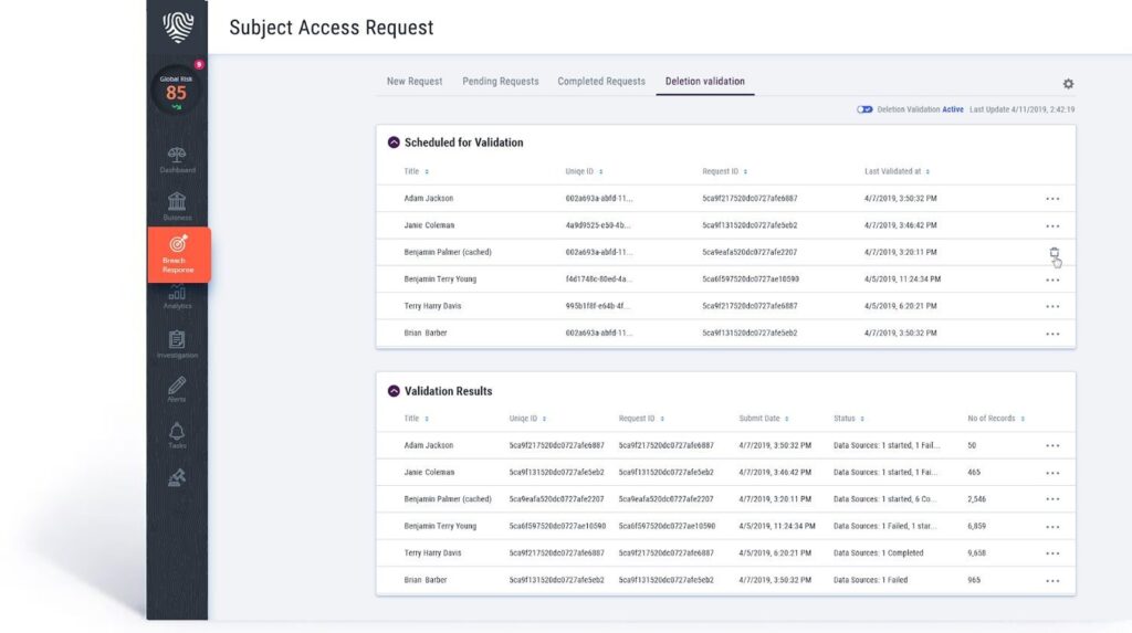 Nutzen Sie Löschvorlagen-Workflows, um Anträge auf das Recht auf Vergessenwerden zu operationalisieren, eine automatisierte Validierung der Datenlöschung sicherzustellen und Richtlinienverstöße zu überwachen, um eine kontinuierliche Einhaltung der Vorschriften zu gewährleisten.