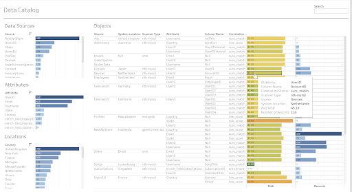 Security and IT teams need tools that help them streamline the way they visualize data across different sources due to technology-created siloes. With BigID and Tableau, teams can deliver rich visualizations and analysis of company’s high value data through dashboards that combine: