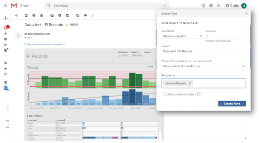 Personalized emails based on customized alerts on BigID metrics through the BigID & Tableau integration