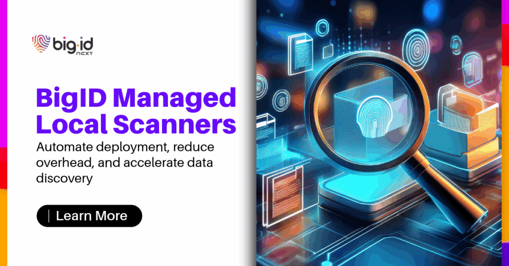 With Managed Local Scanners, BigID empowers enterprises to simplify deployment, accelerate insight, and maintain control over their most sensitive data. Set up a 1:1 with one of our BigID experts today to learn more!