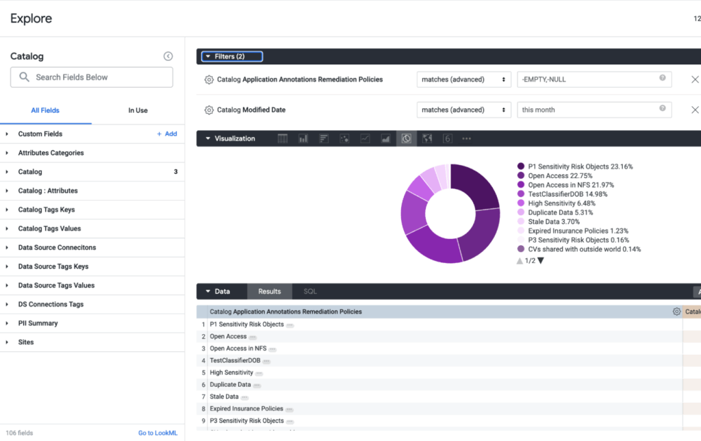 - Monitor sensitive data trends, risk reduction efforts, and incident response performance