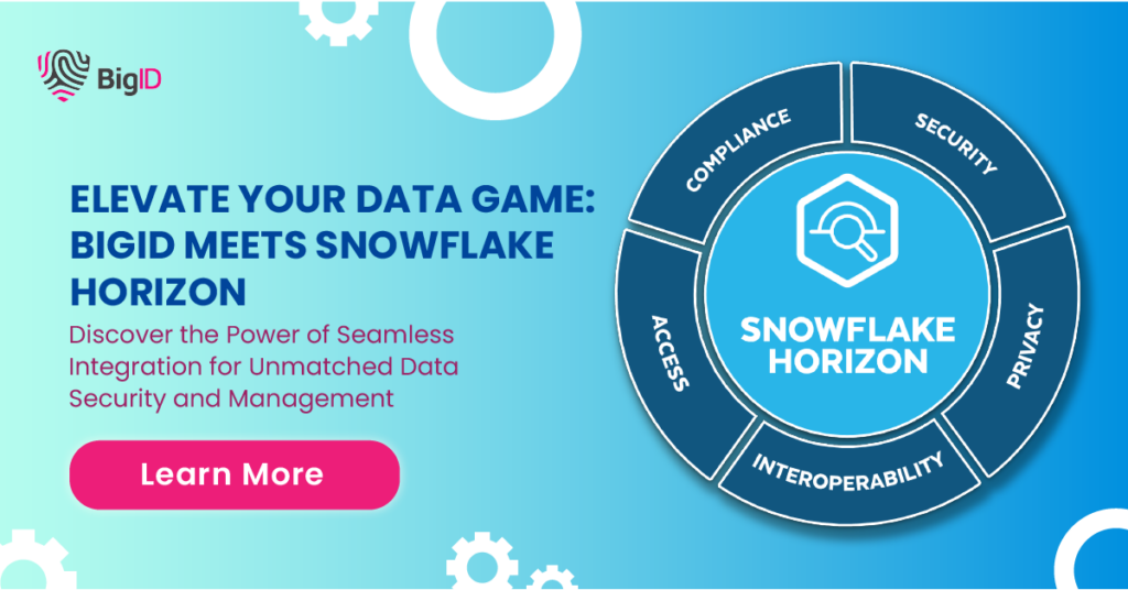 The combination of BigID’s data visibility and control, along with Snowflake Horizon’s gives you a competitive edge toward modernizing data management to strengthen your data security, privacy, and compliance initiatives.