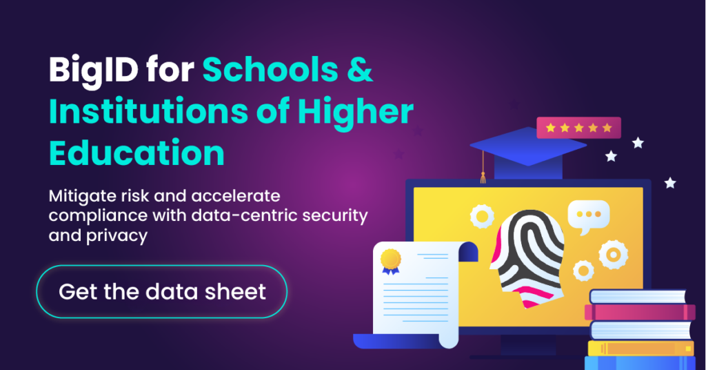 Whether it’s FERPA or HIPAA that governs your data, compliance is made easier with BigID. Our platform helps you discover and classify all your information, ranking it by sensitivity. You get full visibility across all structured, unstructured, and semi-structured data, whether it’s in motion or storage.