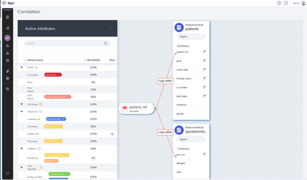 Accurately determine how identifiers like account number, passwords, and biometric data relate to an individual ā and view data relationships in a single, catalog view.