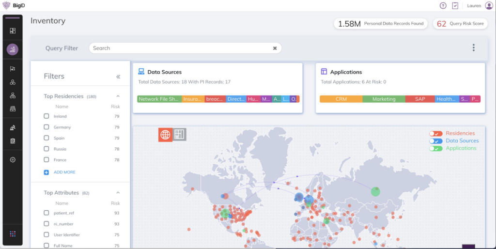 Apply advanced machine learning techniques that can automatically inventory private information down to the individual level ā by residency, sensitivity, risk, custom classifiers, and more.
