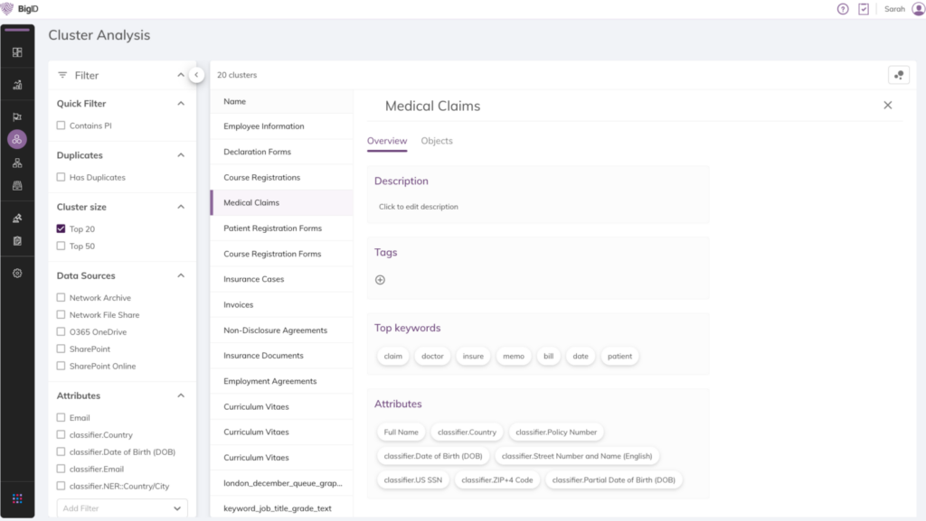Take an ML-based approach to automatically classify, tag, and discover relationships among high-risk, regulated data.
