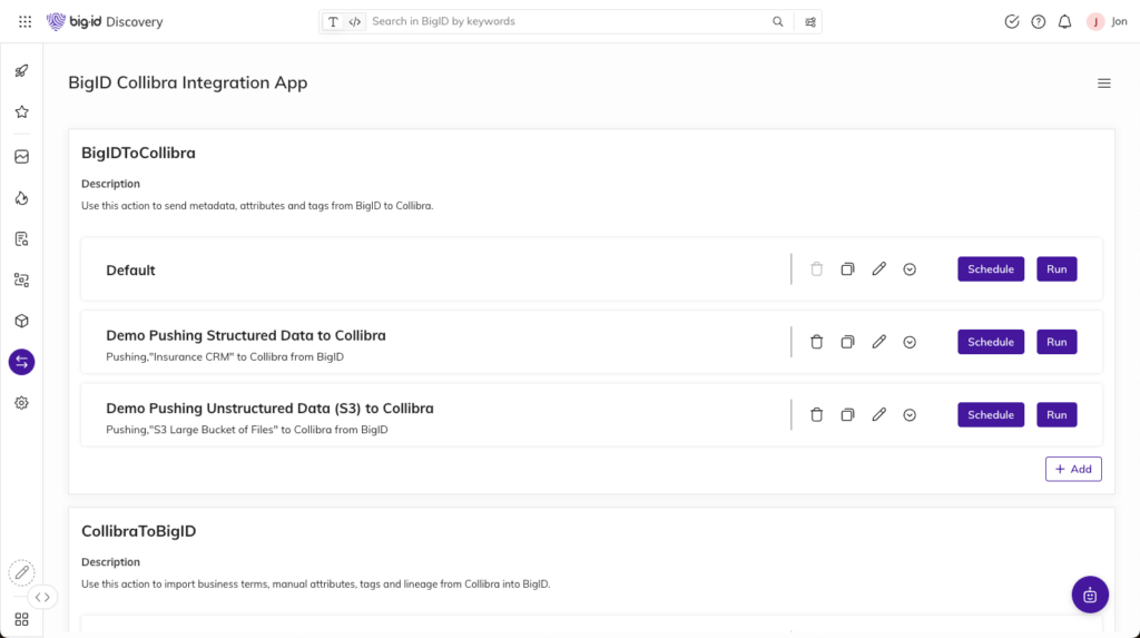 BigID enriches Collibra with deeper context, better classification, and more accurate metadata across your environment: