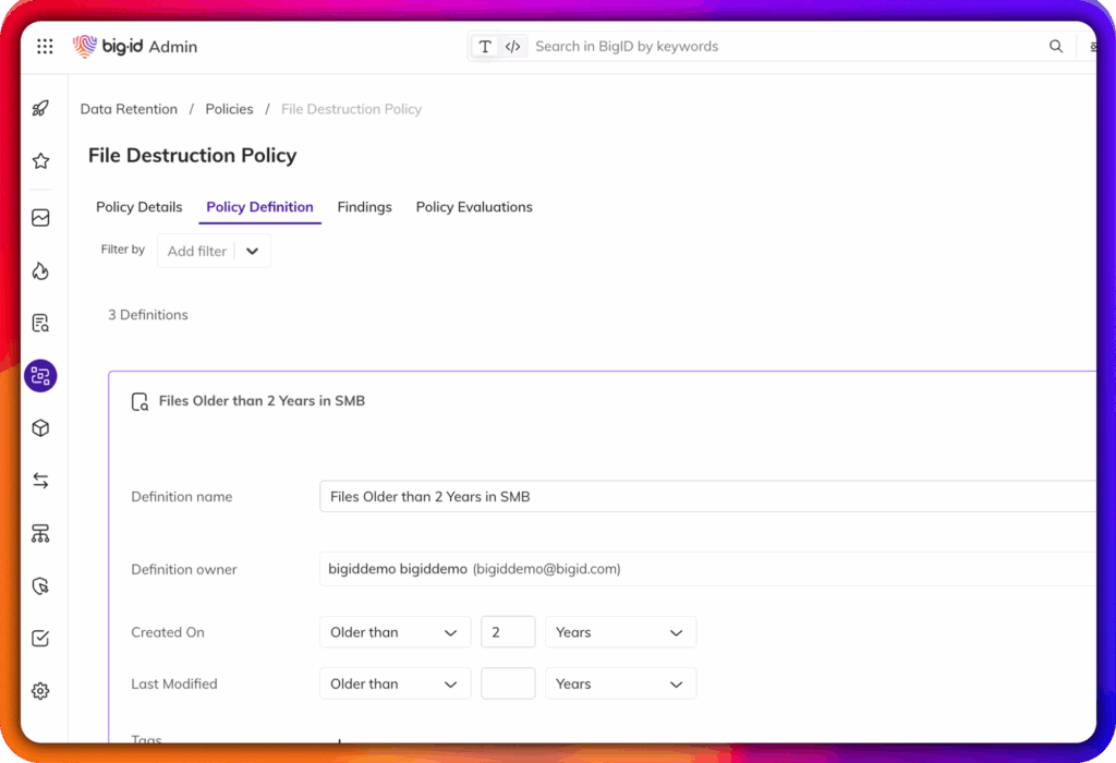 • Operationalize privacy policies across environments with customizable retention schedules