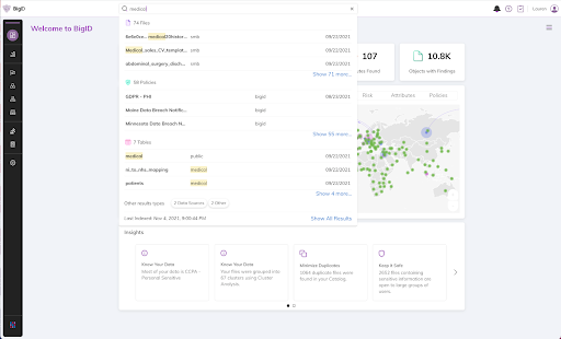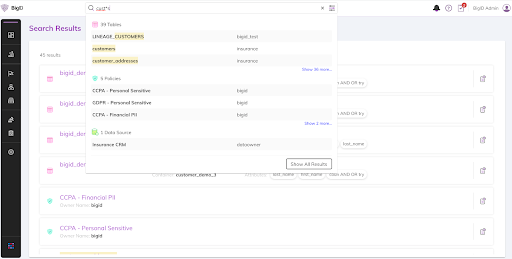 BigID search features enhances productivity to find data faster. Get a 1:1 demo with our experts to see it in action today.