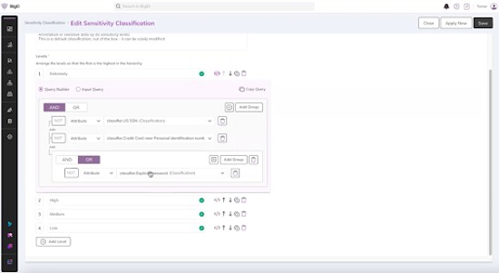 Classez automatiquement les données selon leur sensibilité grâce à des ensembles de règles prédéfinis ou personnalisés. Prenez des mesures correctives dans d'autres applications et outils et mettez en œuvre des politiques pour un meilleur contrôle des données et atténuer les risques.