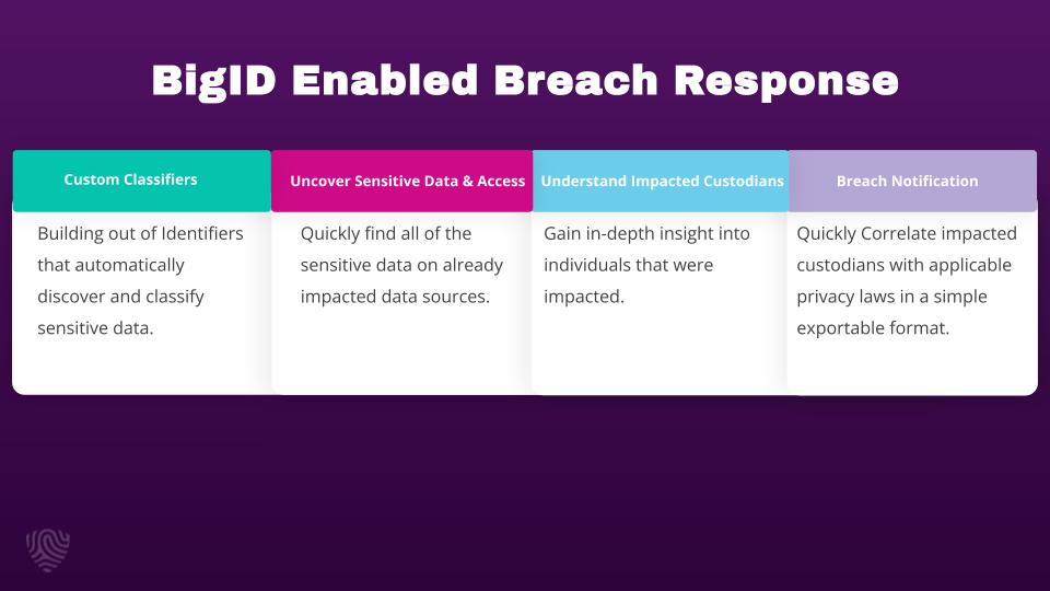 - Advanced Data Discovery: BigIDās ability to scan and classify data at scale ensures a comprehensive understanding of the breachās full impact.