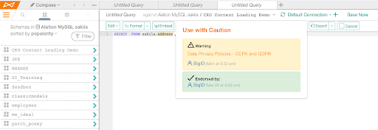 Remediate risk for data analysts and data scientists working in Alation to see data affected by privacy policies at the point of analysis in Compose.