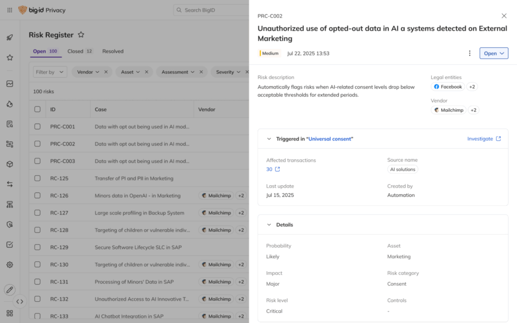 BigID empowers privacy, compliance, and AI governance teams to move beyond static consent records and ensure consent choices hold up across real AI data use.