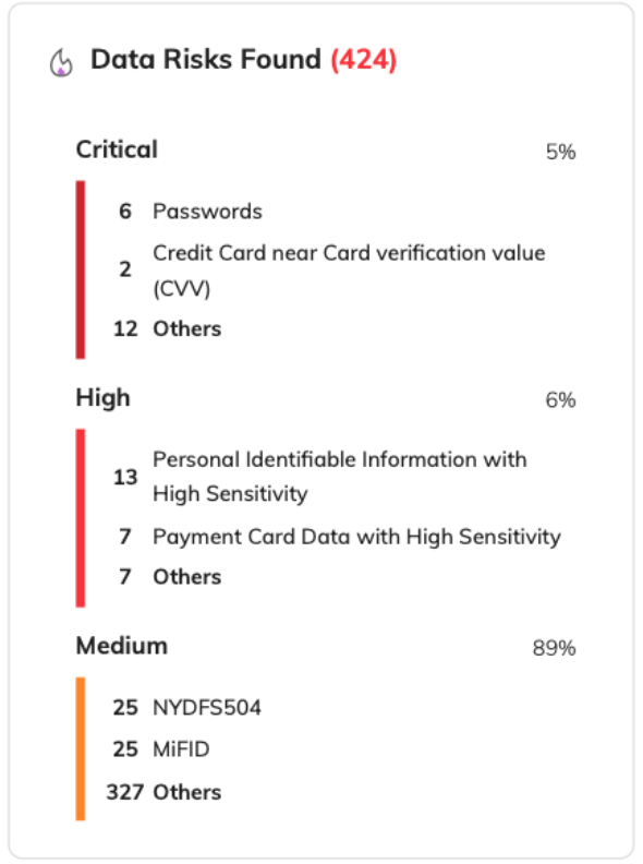 Gain insight into the amount of sensitive data across your environment. Identify the types of sensitive data you possess and where it is located. Prioritize your remediation efforts and better focus your measure and controls around your most critical data assets.