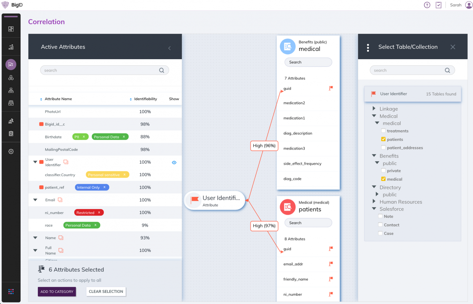 See all of your interconnected data attributes across data sources in one place. Find relationships between data points and infer new personal & sensitive data attributes โ all in one place.