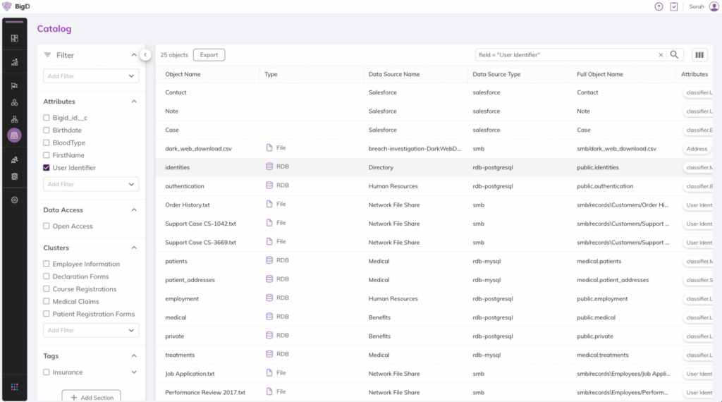Combine graph technology, correlation, ML insight, and automation to uncover more types of highly restricted, regulated, and sensitive data including unique IDs, customer identifiers, PCI, Social Security Numbers, health data, and more.