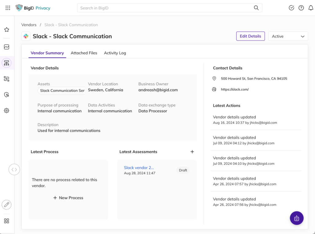 - Vendor Monitoring and Reporting: Keep vendors accountable with ongoing compliance monitoring and automated auditing. BigID ensures transparency and helps mitigate risks by proactively tracking vendor activities.