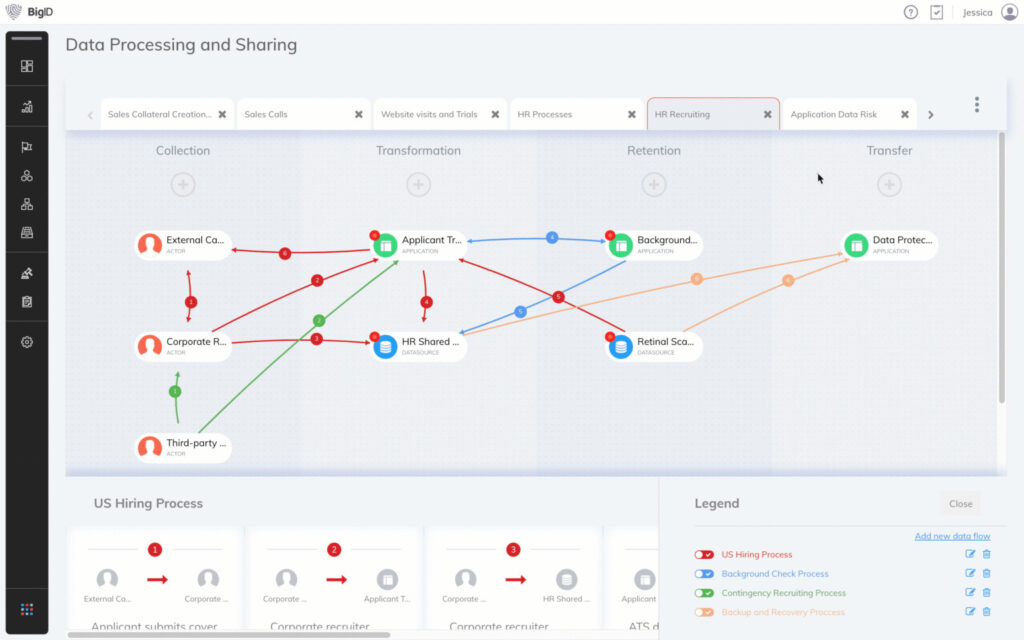 Discover, document, and report on data processing activities to assess data assets, locations, third-party sharing, and data transfers. BigID helps organizations automate data flow to map data processing, secure cross-border data transfers, and validate third-party data sharing.